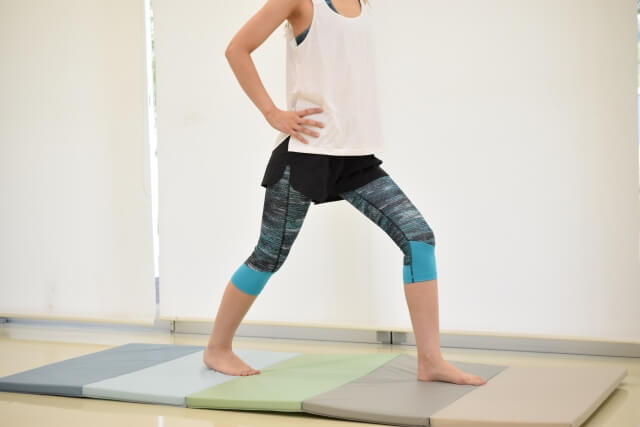 太ももとふくらはぎのストレッチを十分に行い、筋肉や腱の柔軟性を保つことにより負担を和らげてあげます。